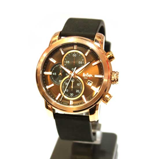 This is a men’s wristwatch that comes with a stainless steel case and a leather band. The round dial face has three hands, three sub-dials, a date window display and precise hour markers. The three crowns on the dial offer added functionality.