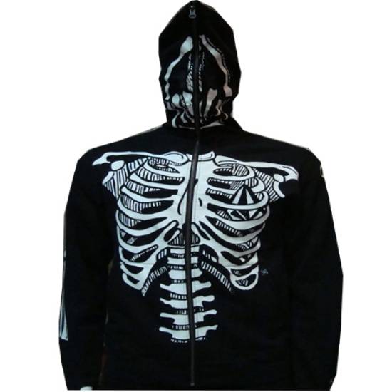 This bold sweatshirt features printed skeleton patterns on the chest and hood with a cool gothic style. The loose, oversized design allows plenty of space for moving and guarantees wearing comfort. The zipper on the front extends to the hood.