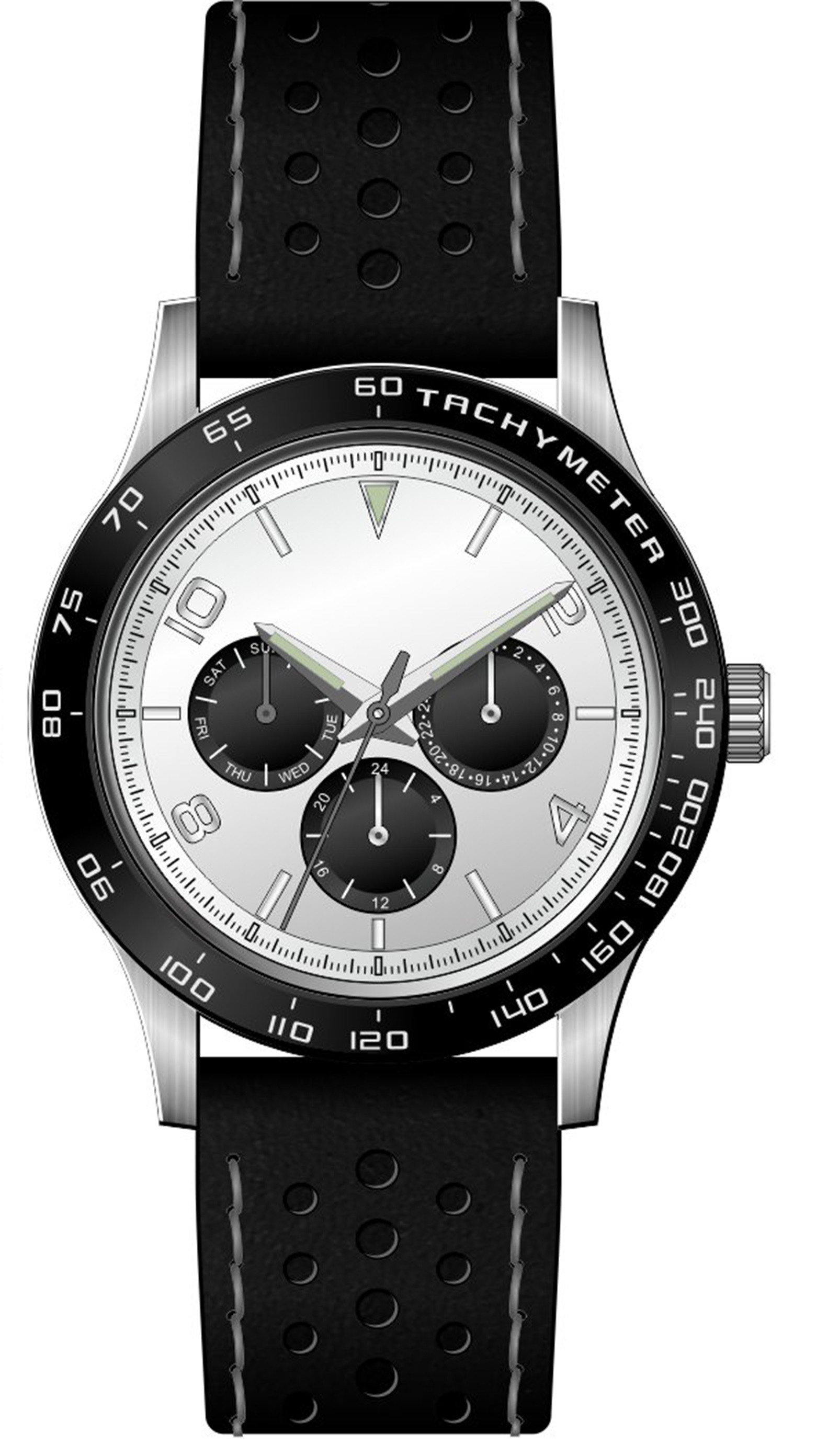 Black to printing with filled Tachymeter, Dial with UP index+ green luminous index, sub-dial with white printings;