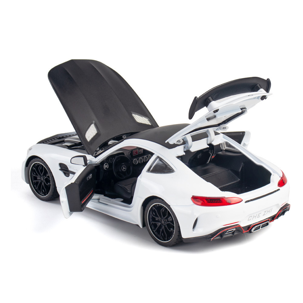 · This Mercedes-Benz AMG GTR 1 / 24 model reelectric car is perfect for children to play with.The aint is fine, feel good, feel very thick.It is also perfect for model car enthusiasts as decorations.