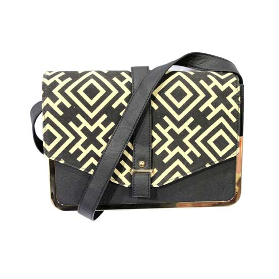 Displayed is a messenger bag featuring a black-and-white motif on the front. Made of PU, this bag is durable with good anti-scratch ability. This messenger bag comes with a shoulder strap, making it a versatile choice for women who pursue a leisure style.