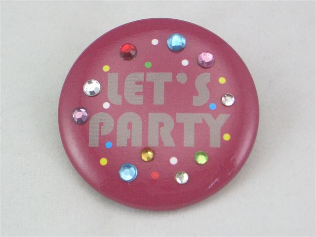 As shown is a metal badge which is best to be a souvenir. The water diamond stick on the face of the metal badge is beautifully designed and printed. This badge is a nice accessory for bags or jeans too.