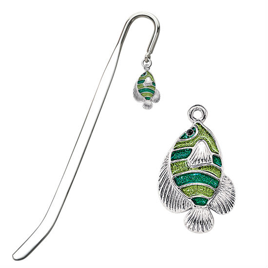 This metal bookmark dangles a striped fish pendant of vibrant blue and green appeal, basking in lustrous nickel plating to capture eyes. Its sturdy dragonfly design further comes in a flat profile with a rounded hook finish for convenient page-marking in magazines, novels and more.