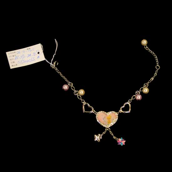 This metal bracelet is made of top-quality alloy material with plastic beads. The classic design with heart-shaped decoration is alluring and attractive. This bracelet is an excellent choice for dreamy little girls.