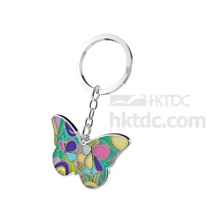 Metal Butterfly Shape fill in Enemal (color) Keychain