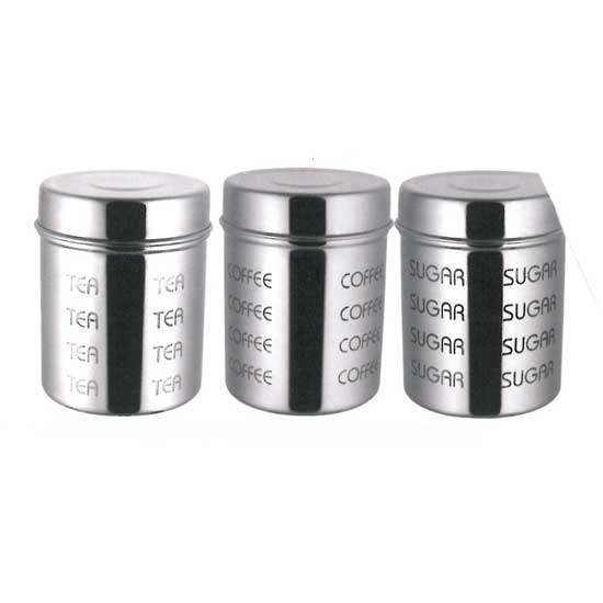 Displayed here is a metal canister with a fine mirror finish that exudes a sense of elegance from its uniqueness. The sturdy and durable metal construction of this canister is made to last. This stylish metal canister adds sophistication to a fancy kitchen.