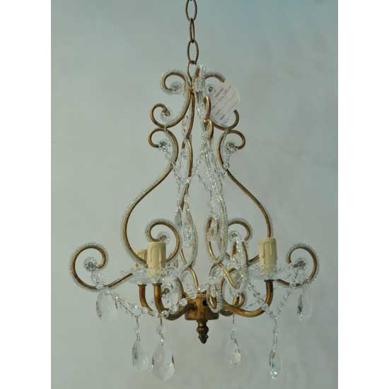Shown here is a metal chandelier with a classic and elegant design that evokes a sense of luxury. The antique finish of the metal construction casts a touch of glamor over the entire piece and helps to create differentiation. This sophisticated and artistic chandelier is the perfect enhancement to accessorize your living room.