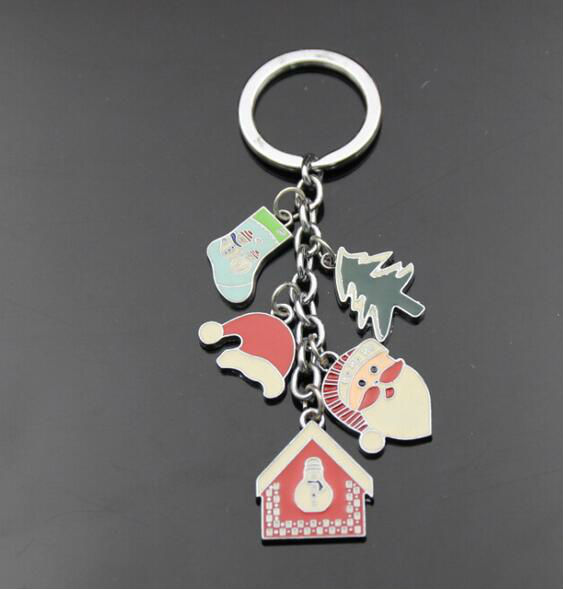 metal christmas hat keychain displayed is made of zinc alloy material