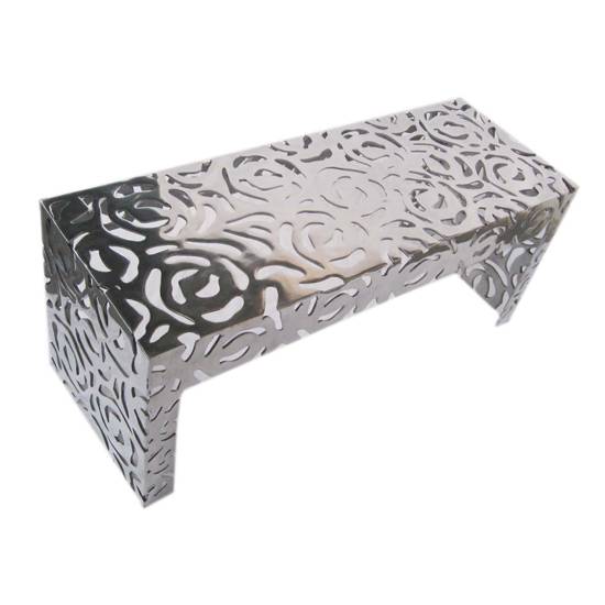 This is a coffee table which is made of thin metal. It has thick openwork patterns like roses.