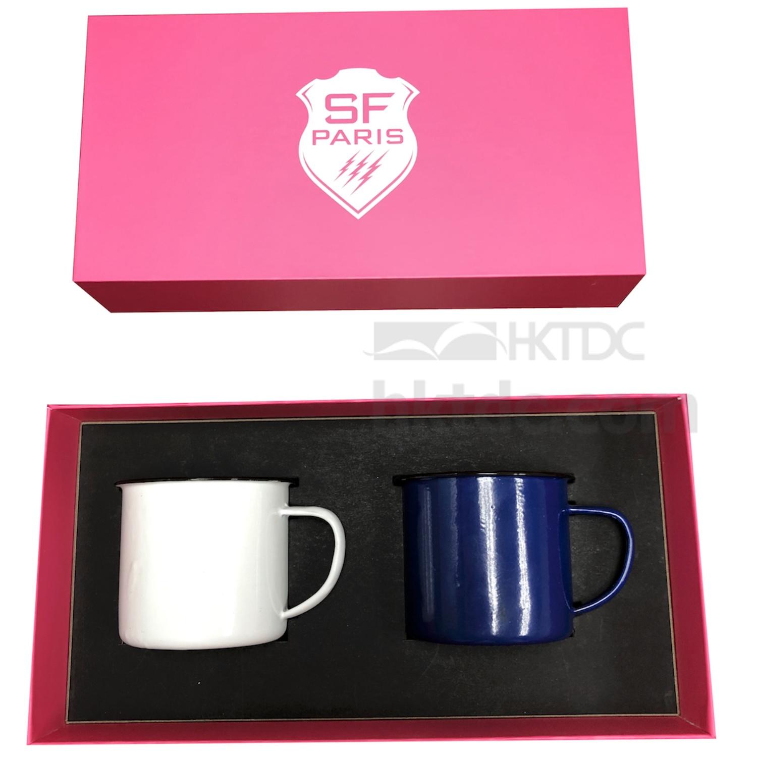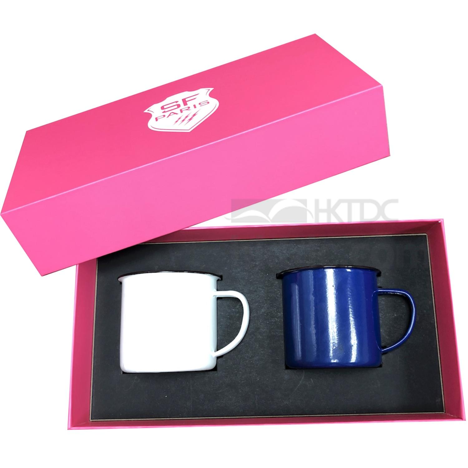 Remarks: this box is designed for metal cup packing. Using paper platform with die-cut 2 holes to fix the cups, and placing one piece of 5mm foam at bottom and top respectively of inside outer box to protect cups in further.