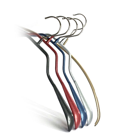 These hangers are available in different forms for tops. Each piece features an anti-slip over-coating in a special color with a glamor effect. The hangers are made of quality metal for durability.