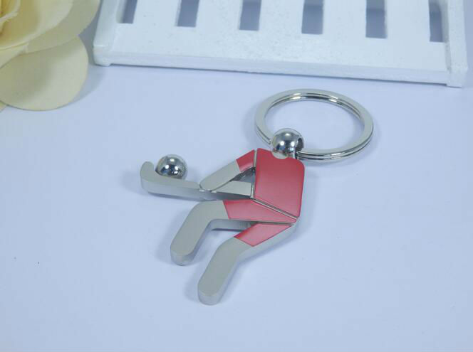 metal hockey ball keychain displayed is made of zinc alloy material