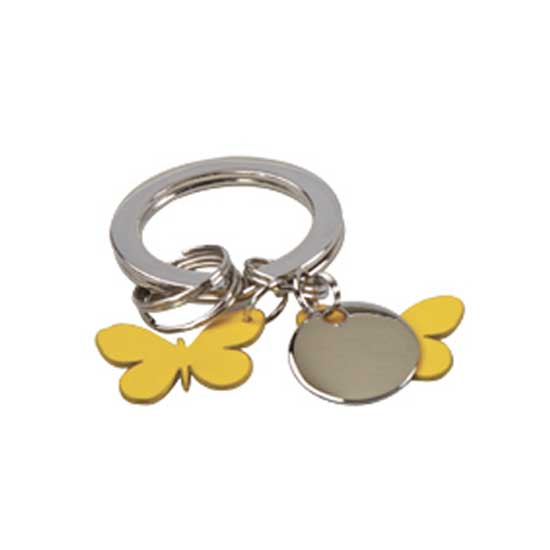 The keychain boasts durable metal construction for long-time use. The strong metal ring keeps your keeps securely organized. Adorned with yellow butterfly charms, this pretty keychain is a pleasant souvenir for your friends.