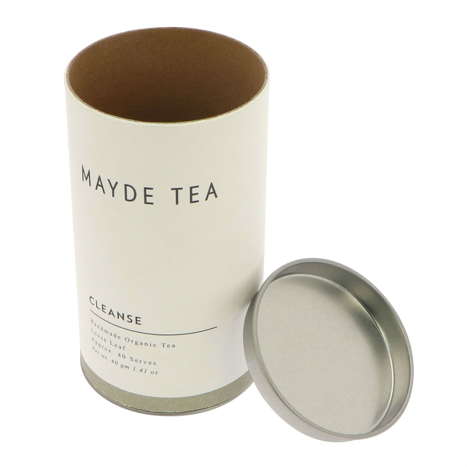 This packaging can comes in a cylindrical tube shape and is made of paper and metal. It is printed with product information on the exterior and is covered with a metal lid. The tube can provides a classy and hygienic way for packaging and is ideal for tea leaves.