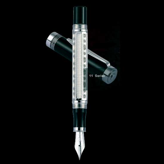 Featured here is a metal pen made of fine metal. It exhibits an elegant design, featuring a patterned barrel in silver. The cap features a screw-up style which offers reliable attachment of the cap. This exquisite pen makes a sincere gift.