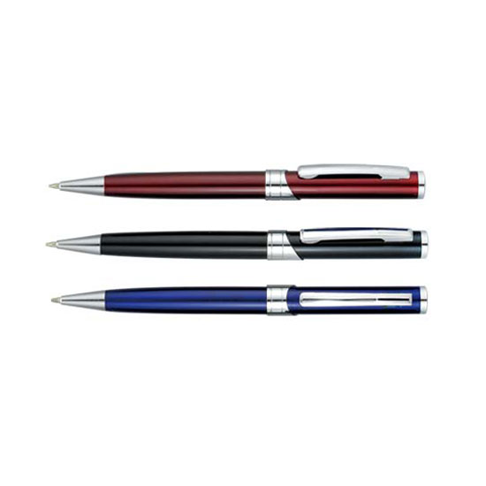 This is a twisted ball pen with an elegant and stylish appearance. It is designed in a sleek and compact size for easy storage. The pen features a round pen barrel with a pocket clip for added convenience.