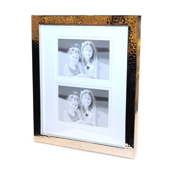 This is metal photo frame has beautiful create wave pattern. It has white double openings to display two photos.