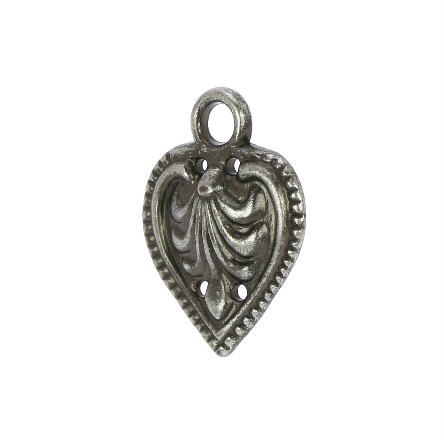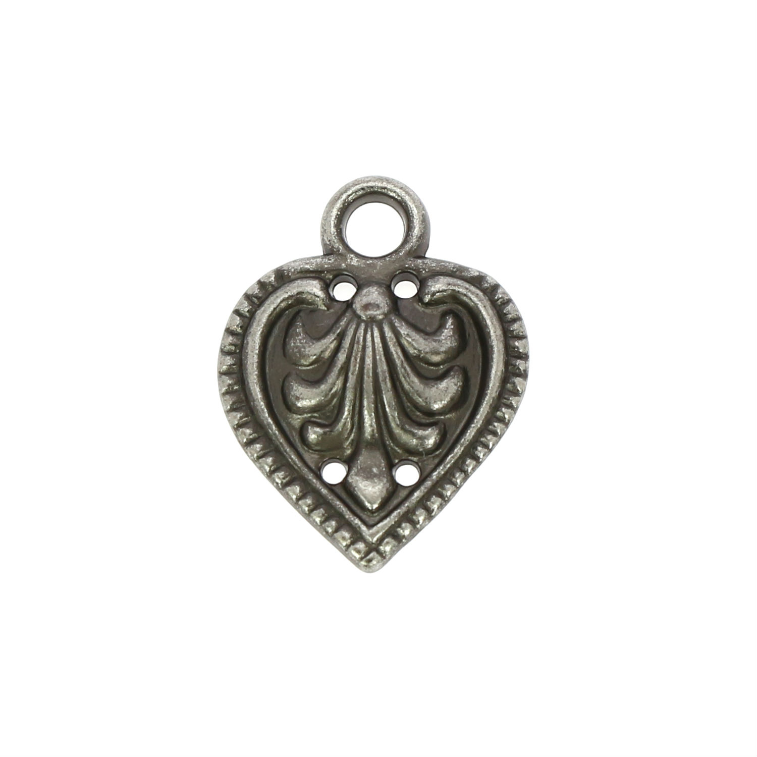 The highlighted zipper puller is made of metal and comes in a heart shape. It has a textured exterior to offer a good grip and has a loop on top for attaching to zippers. This zipper puller can be used for replacements and is excellent for ornamental applications.