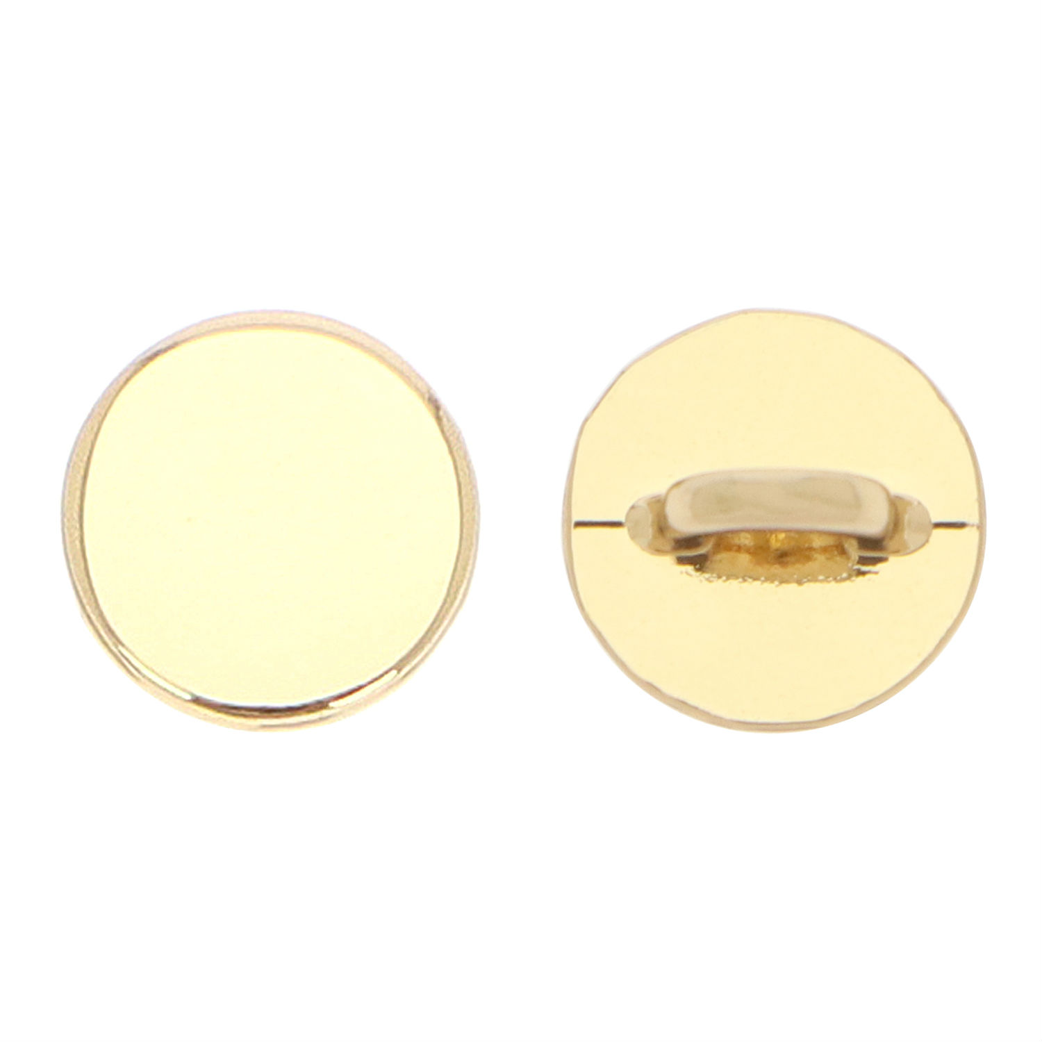 Stock this metal shank button up for your fashion studio. The round, glossy shank button is fashioned to the finest with durable alloy metal and is further lavished with HP platings for added longevity and beauty. Tailored for sew-on projects, it is partnered with a shank closure at the rear to ease your crafting project.