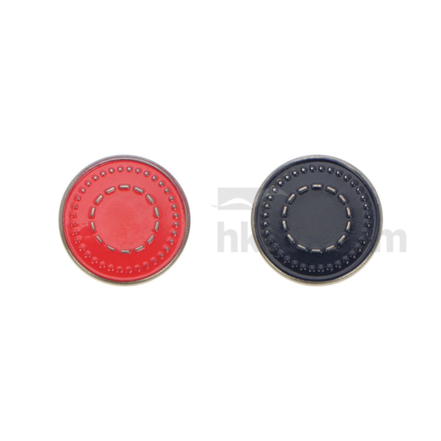 This brass snap button is round shaped and has a post at the back for easy installation. It has a plated finish with enamel tinting and has a textured surface to provide a good hand feel. The brass snap button can add an elegant touch to garments and flaunts a long lasting durability.