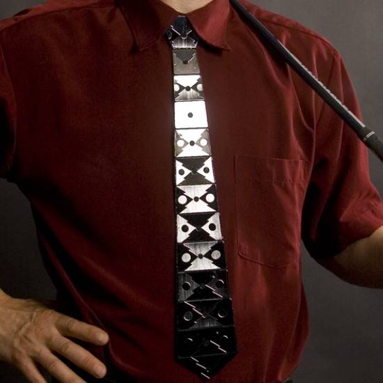 The innovative men's tie boasts a metallic surface with surrealistic geometrical shapes. The lustrous surface conveys a trendy feeling while not neglecting your professionalism and confidence. Transforming the traditional tie into an unconventional and extraordinary accessory, this easy-to-match men's tie is perfect for your casual clothing.