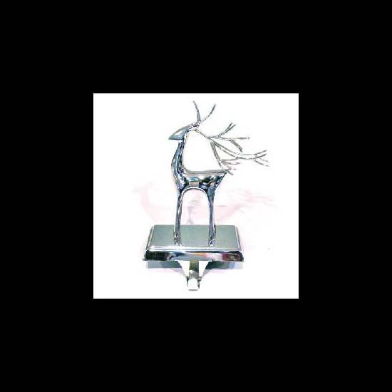 This silvery metal hook is composed of a base with a standing reindeer and a small hook