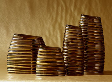 A distinctive form of art is greatly presented by these ceramic vases. The bronze vase is circulated by tinted rings for a stunning look. The robust construction promises a firm grasp on the table for sure.