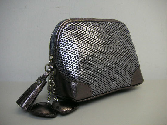 Metallic perforated PVC with metallic PVC cosmetic bag.