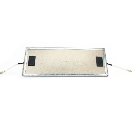 This is a mica heating film in a rectangular shape. The sealed construction allows direct immersion in liquids. It is typically applied in semiconductor processing, packaging, strapping and sealing equipment, DNA analysis, etc.