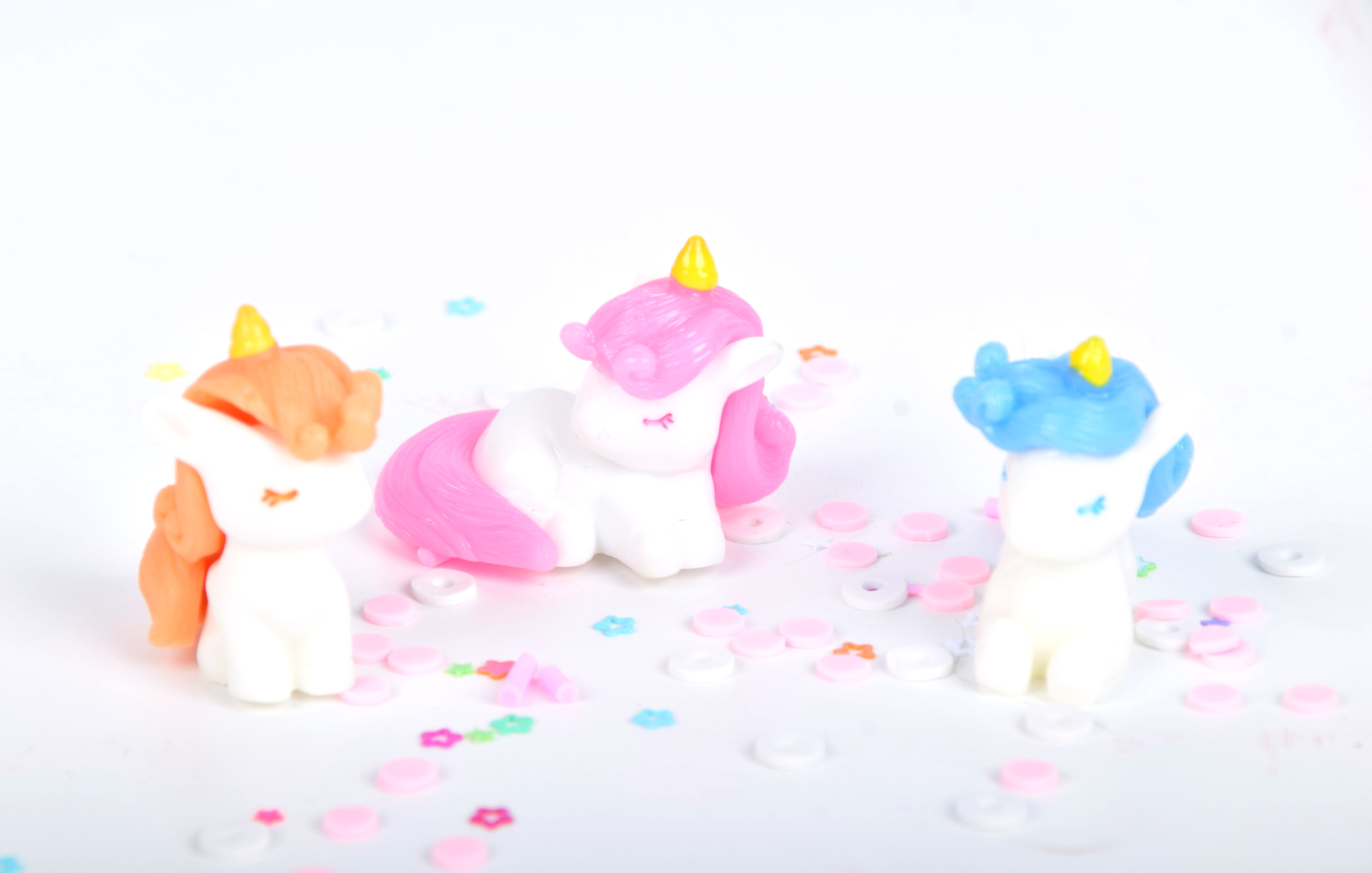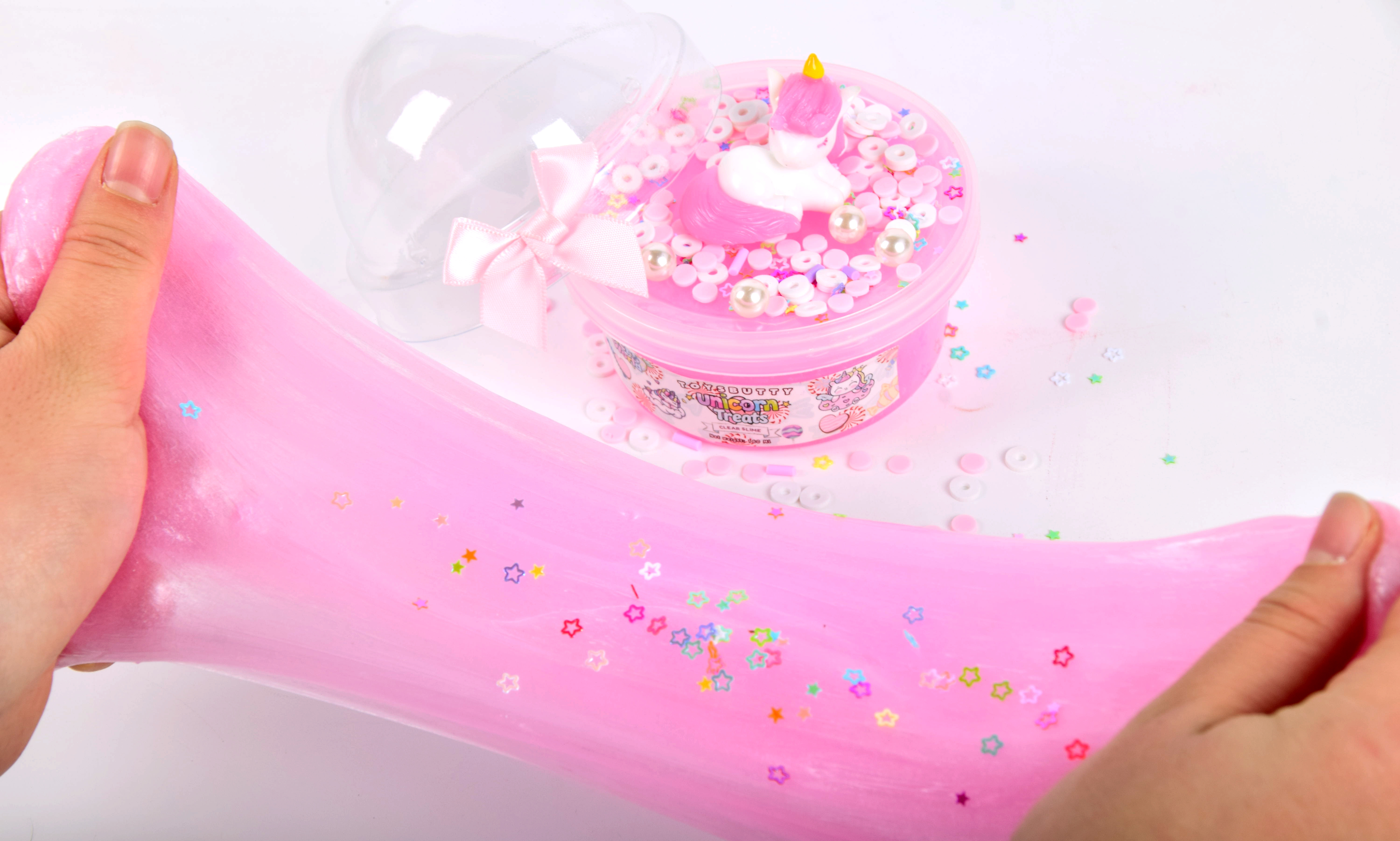 Texture: This magical collection includes whimsical slime charms inspired by unicorns and mermaids, featuring adorable unicorn figures and two charming mermaid tails, sparking your child’s imagination and adding fun to every creation!