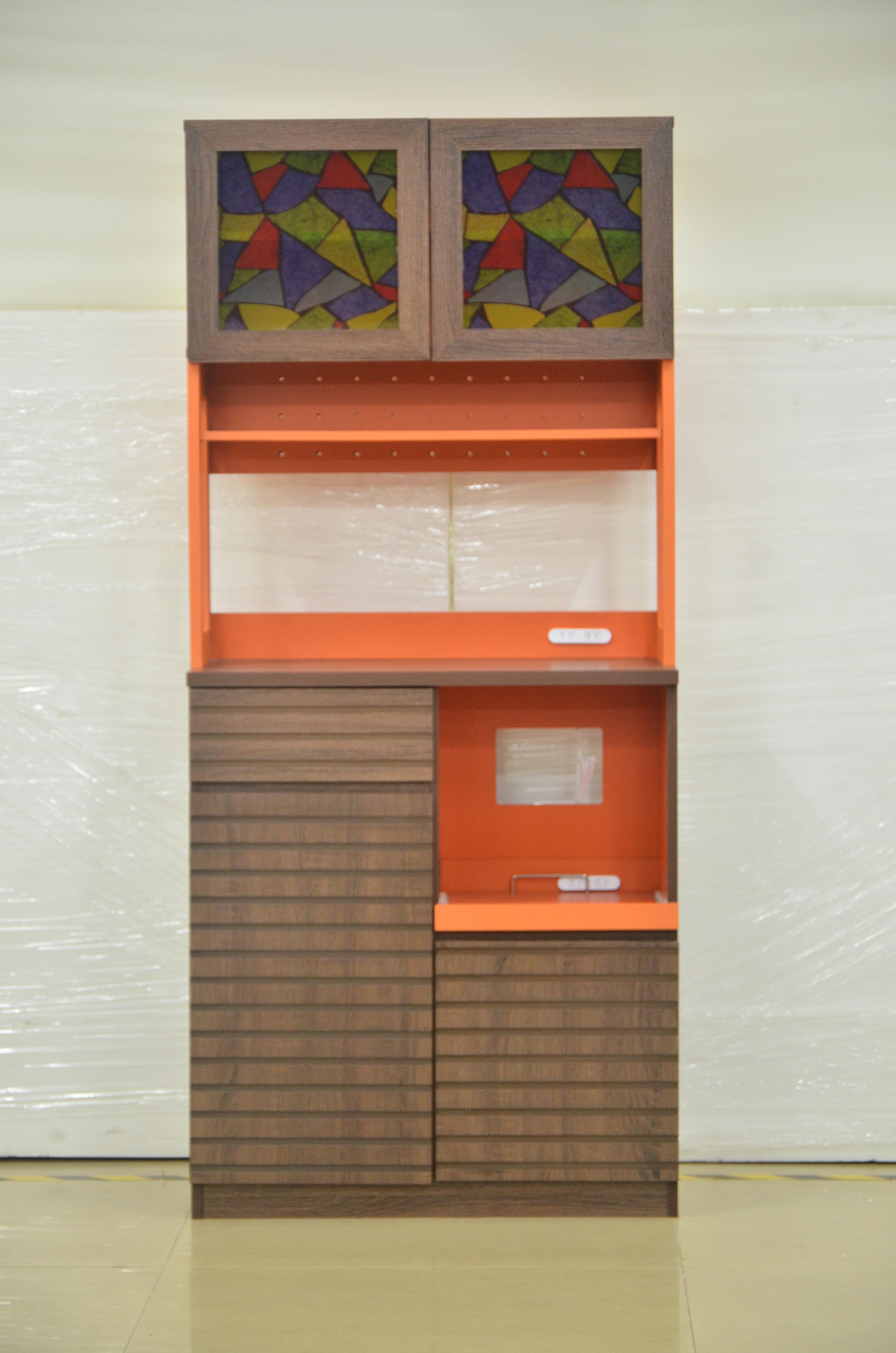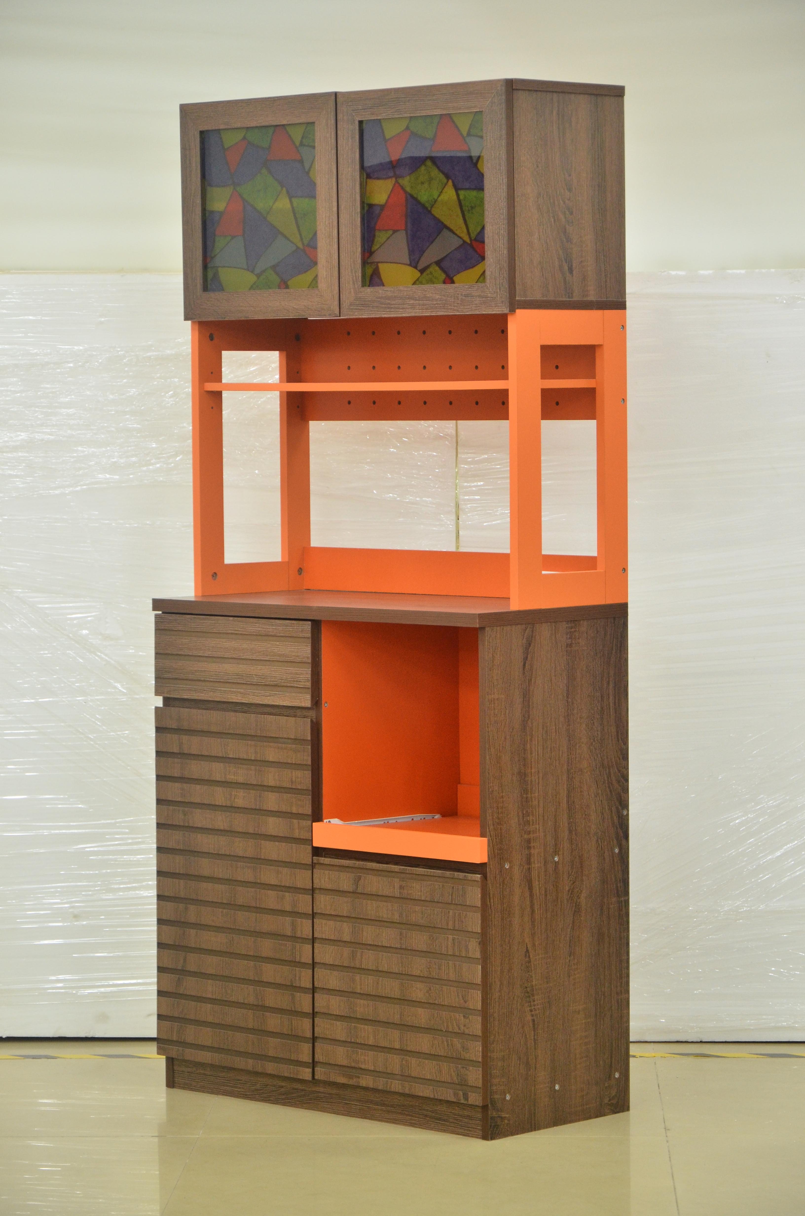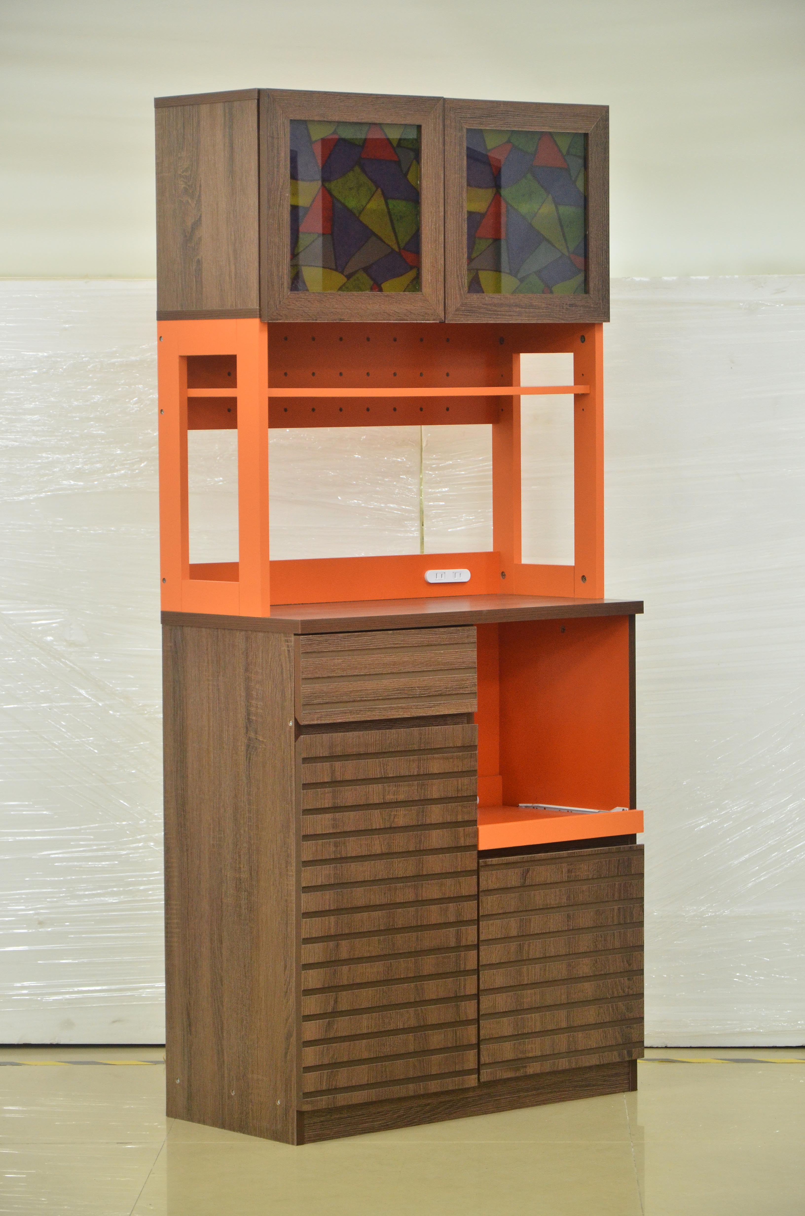 Microwave Oven Cupboard with Mosaic Glasses Door and Drawers