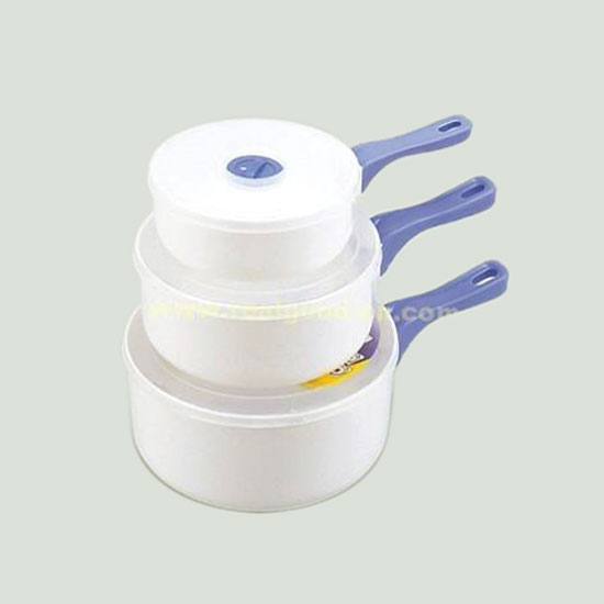 This is a set of microwave pans in different sizes. Each piece features a round body with a matching lid and an ergonomic handle. Made of high-quality material, this set promises an extended service life.
