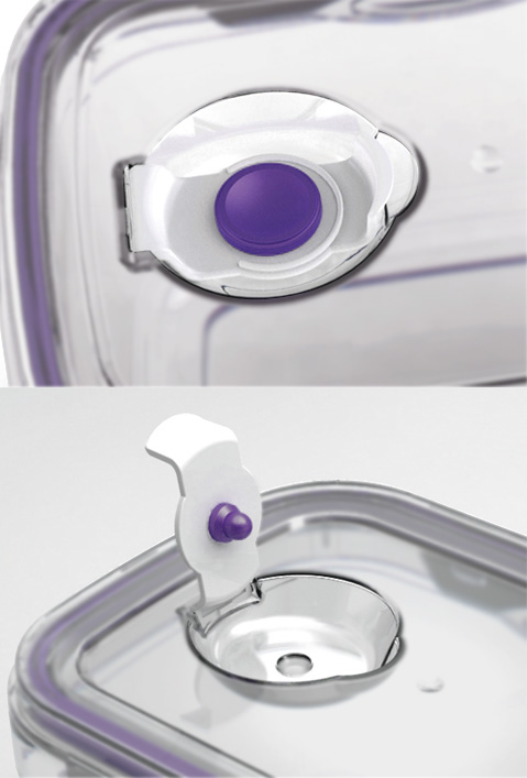 For sealing, place it onto a flat surface and push down on the lid until two tabs click into place