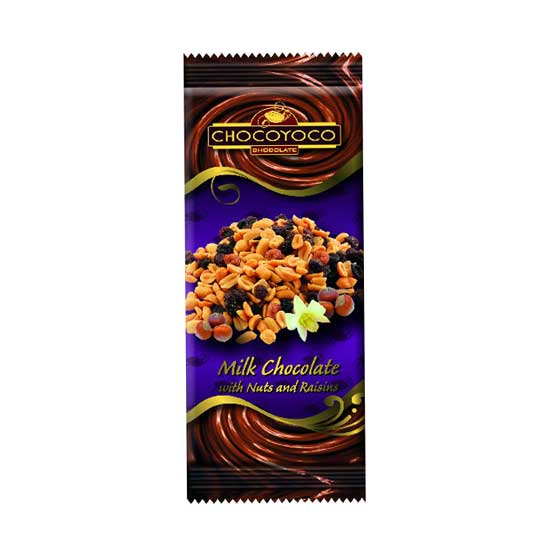 The chocolate is blended with milk for a milder and creamier flavor than dark chocolates. It is covered by raisins and nuts for a more delicious flavor. It comes with eye-catching packaging for added attractiveness.