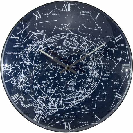 A NeXtime designed glass clock that is made with the latest 'glow in the dark' technology. This clock will be giving out light; faintly shining so as to be visible in the dark, showing a mesmerizing and true image of our galaxy.
