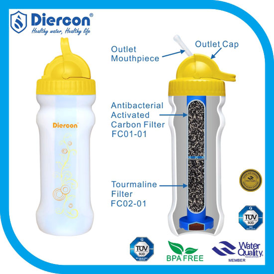 - 20oz BPA-free squeezable bottle with a tourmaline filter.