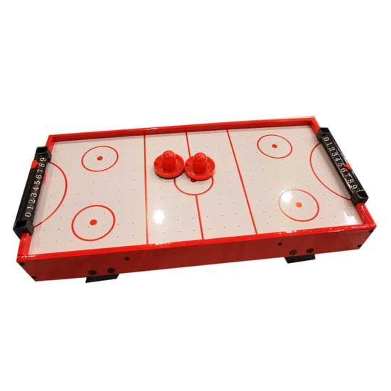 The mini air hockey includes items made out of metal. It includes a rectangular-shaped game table, pushers, etc. The toy is designed for players aged 5 years old and above.