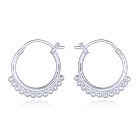 Mini Beaded Polished Silver Hoop Earrings