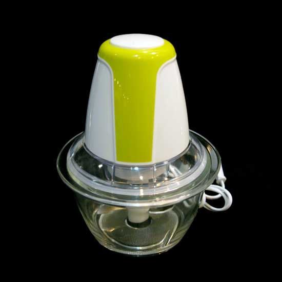 This mini electrical chopper features a glass bowl and an ABS top for durability. It is equipped with two sharp blades for even chopping. This compact sized electrical chopper is ideal for home use.