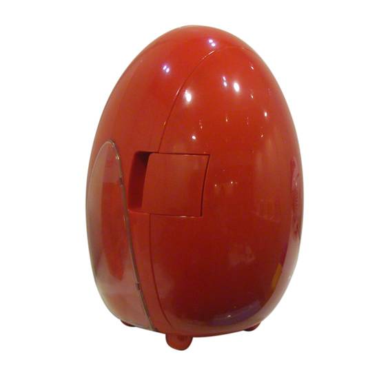This mini cooler and warmer have a standing egg design. It is made of ABS material. Three legs at the bottom keeps it standing stability.