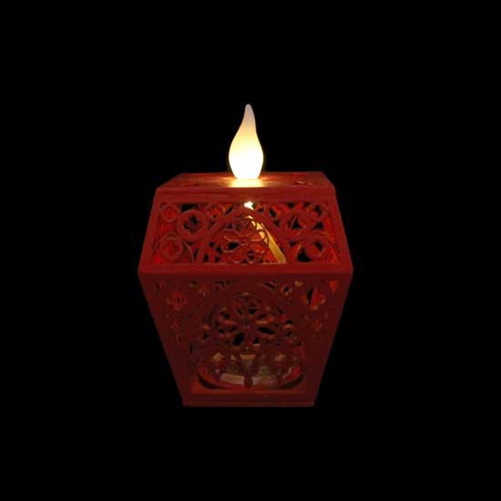 This mini lantern features a red wooden housing with intriguing cutouts. It is fitted with an LED bulb for high efficiency. This elegant LED lantern makes a great addition to your home.