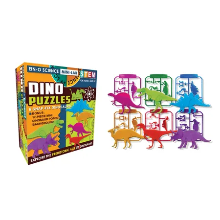 Explore the prehistoric age of dinosaurs through 6 Snap-fix Dinosaurs. Included in the kit are dinosaur pop-outs and background pop-outs such as rocks and trees.