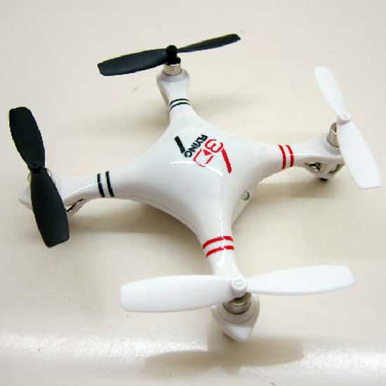 Displayed is a mini quadcopter that comes with a lighting function for a fun effect. Featuring a robust structure, this toy quadcopter can be easily controlled within 60 meters using a remote control. This mini quadcopter flies smoothly and in multiple directions.