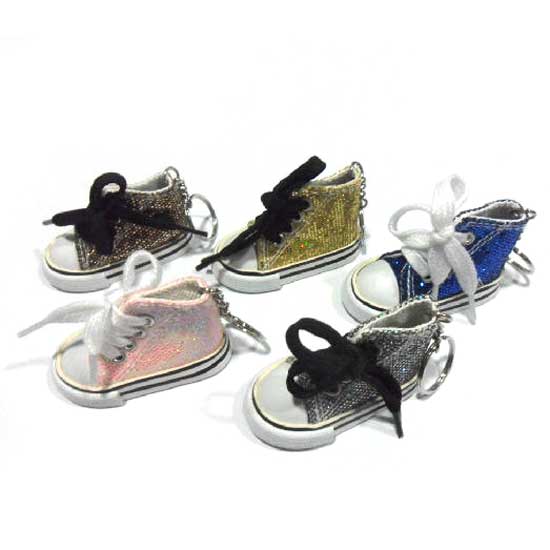 This eye-catching keychain is attached with a realistic mini sneaker. The body of the sneaker is coated with glittering powder for added appeal. The functional and stylish keychain is a perfect accessory for young people.