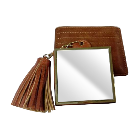 Mini Square Makeup Mirror with Leather Cover Gift for Women