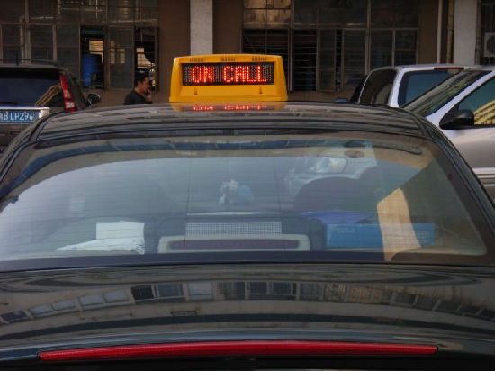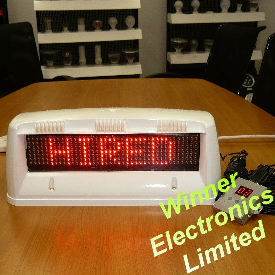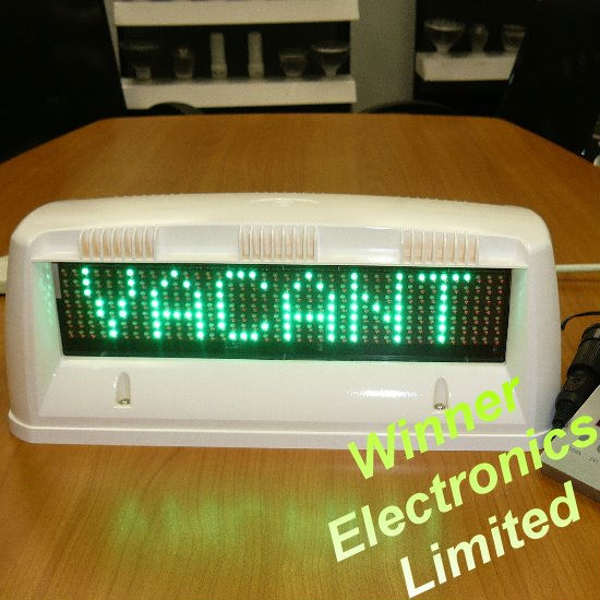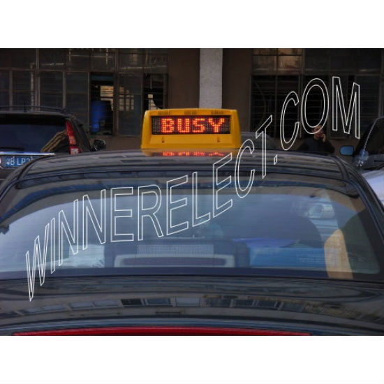 As shown is a mini taxi sign coming with 7 x 40 dots resolution. The mini taxi sign can display 99 different messages with 7,000 characters, including text, graphics and PC animation. Message can be easily programmed or changed by using remote control.