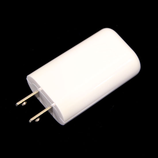 This USB charger features a white rectangular casing with round ends that gives robust construction. The top is designed with two flat pins for connection. The mini-sized design allows you to carry it around easily.