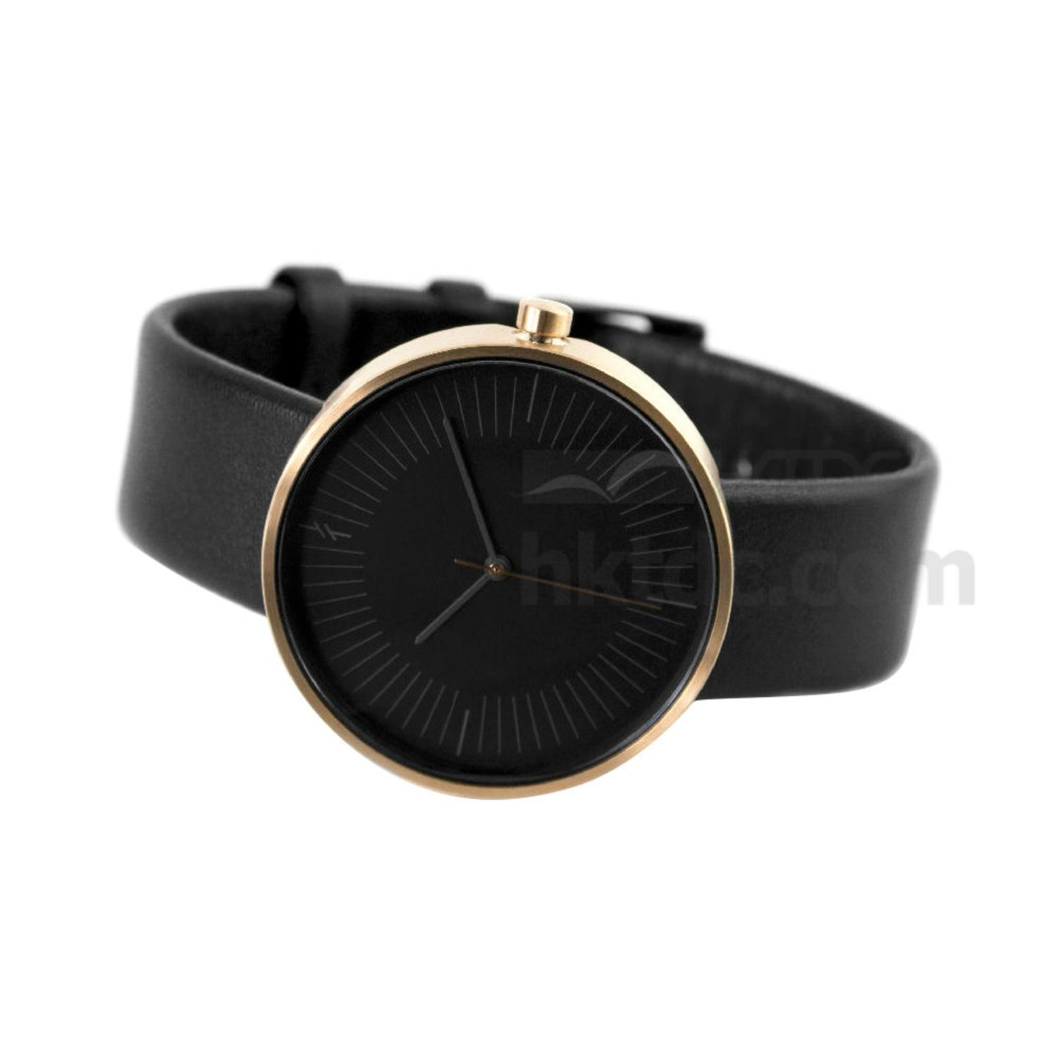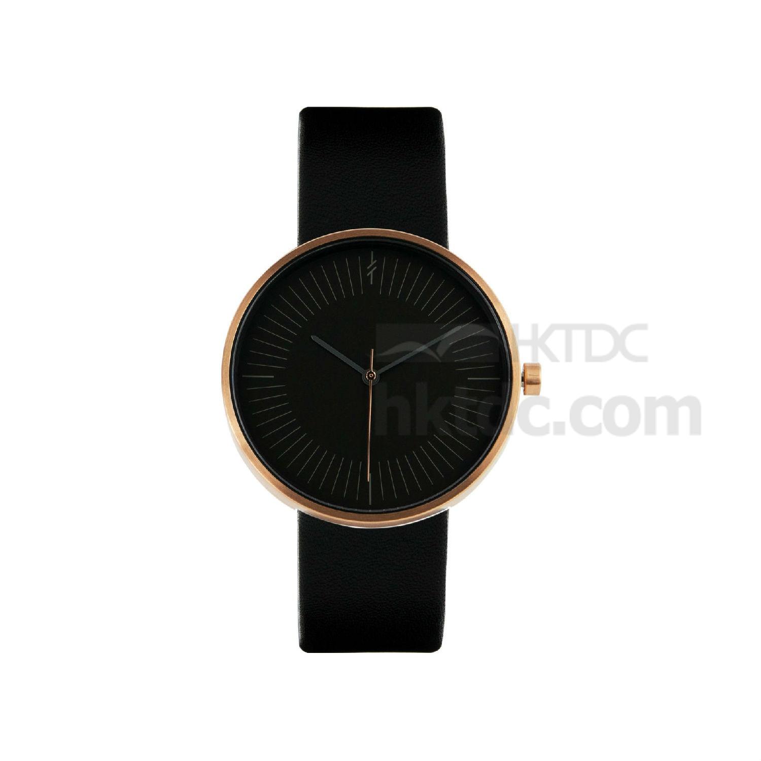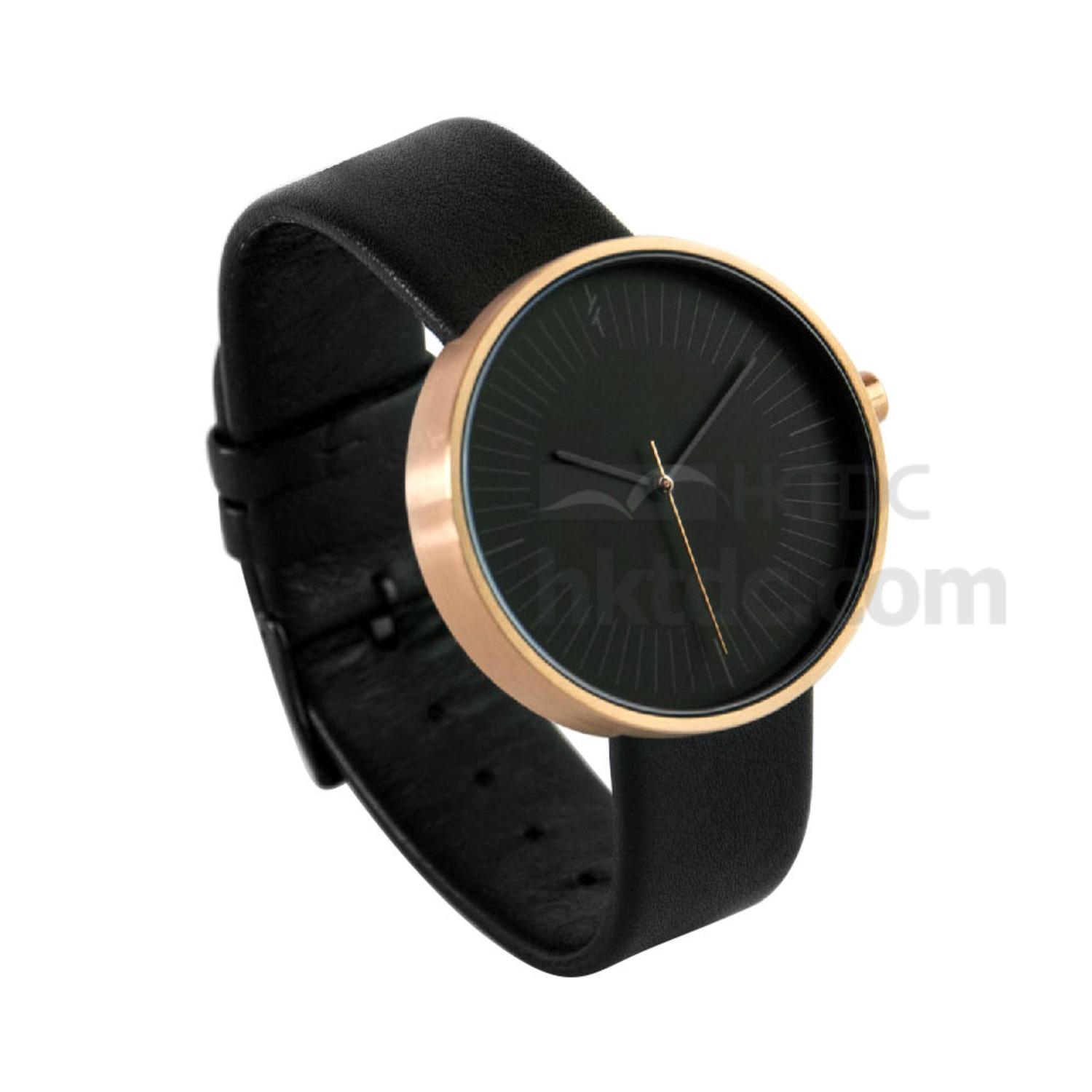 Give punctuality its moment to shine on your wrist with this analogue watch. Steeping in a chic solid black, the Italian leather strap of pin buckle fastening partners a classic round dial with baton indices and triple hand movement to tell time. The thin rose gold bezel further delivers absolute luxury for enhanced definition.