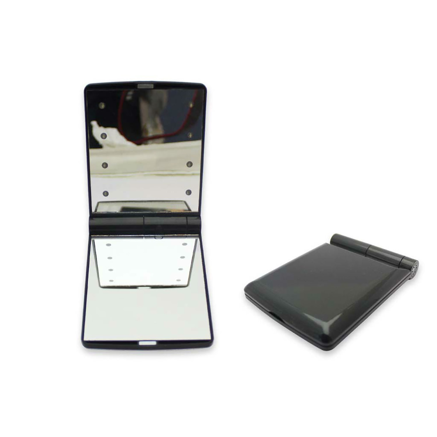 Foldable make-up mirror w/ 8 LED includes the following features :