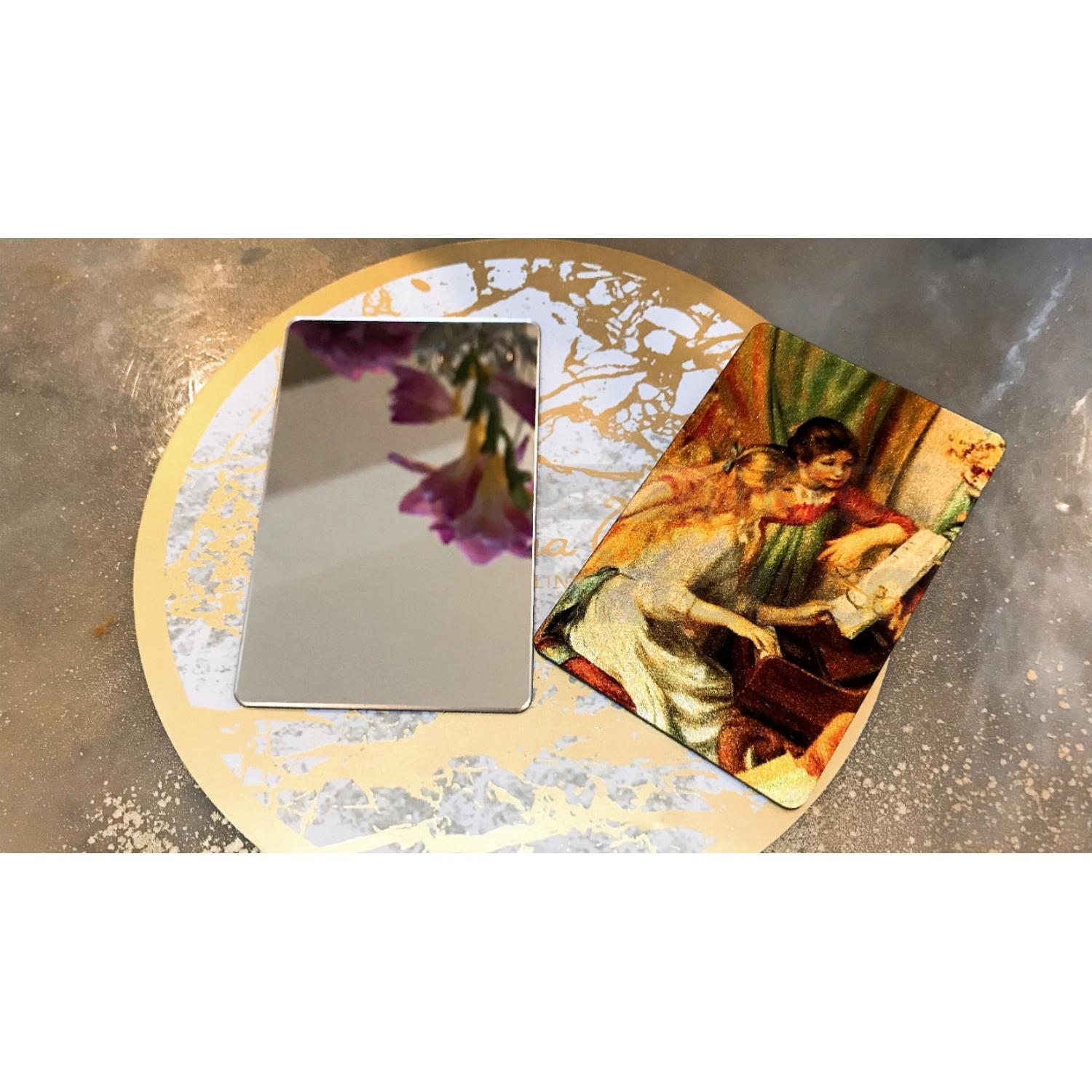 • This card-sized mirror can fit into your wallet and it can easily be carried away. Patterns are printed with high-gloss Ultraviolet printing technology, finished with ultra-durable acrylic mirror.